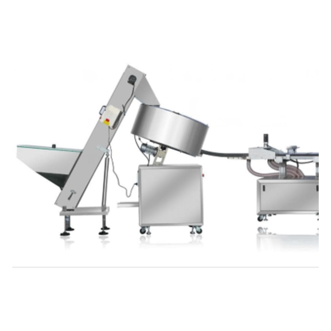 La funzione dell’elevatore è quella di convogliare le capsule vuote all’orientatrice automatica. Inoltre l‘elevatore è costituito da una tramoggia può caricare 4000-5000 capsule*.