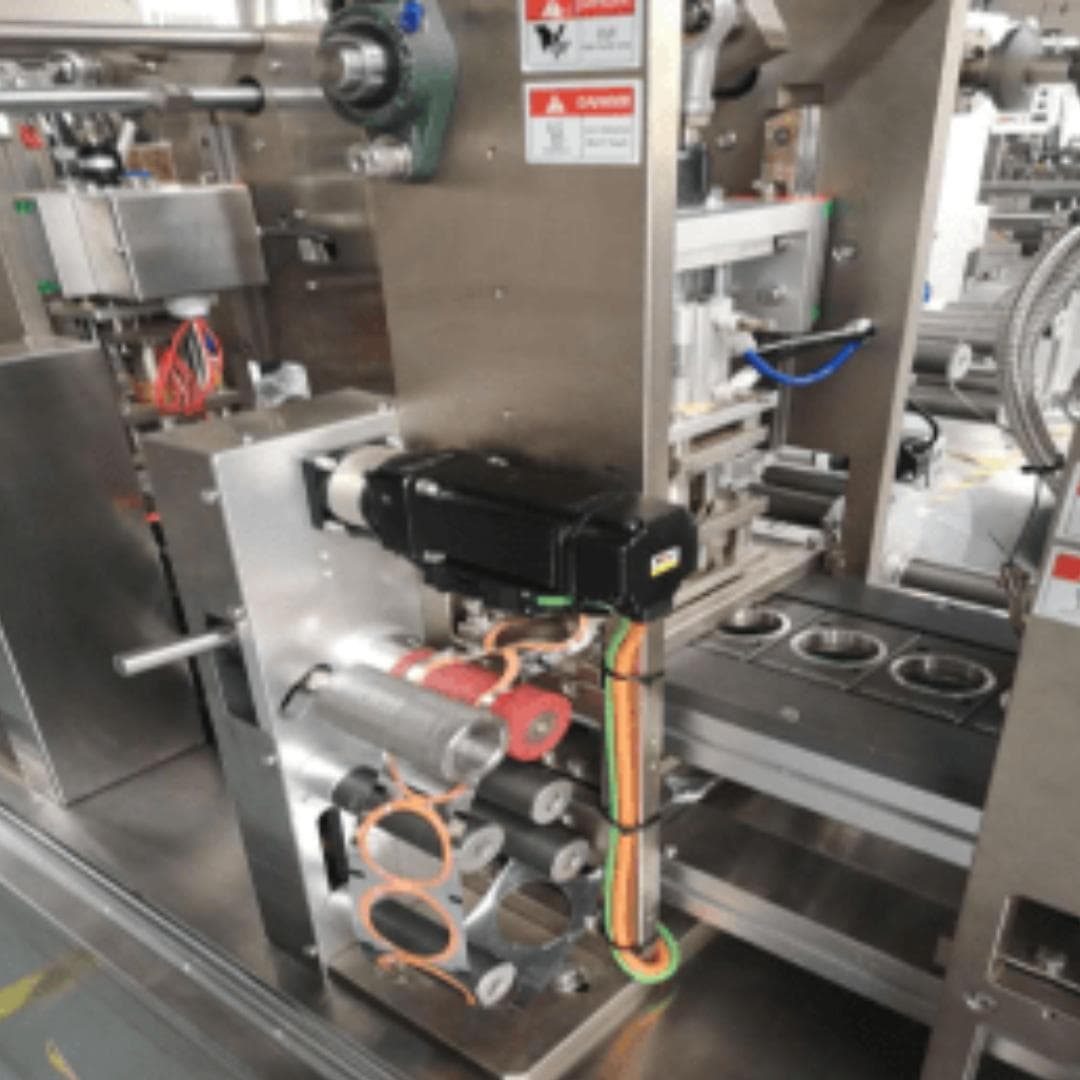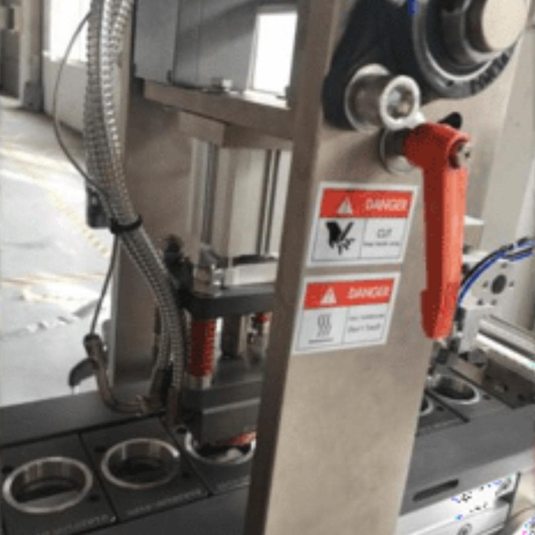 Dopo aver tagliato e sigillato il film nella parte superiore della capsula, è presente questa sezione della capsulatrice che costituisce la seconda stazione di saldatura.